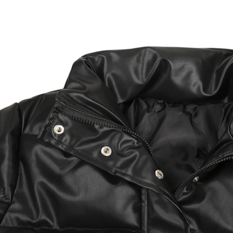 Veste d'hiver élégante pour femmes avec col montant, fermeture éclair et boutons pression, et conception en polyester résistant. Modèle chaud et confortable idéal pour les intempéries hivernales. Description complète