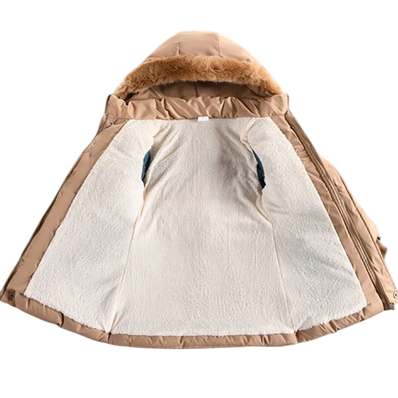 Page d’accueil Page d’accueil Vêtements et accessoires Vêtements et accessoires enfant Vêtements fille Vestes, manteaux et gilets fille Vestes d'hiver fille Veste d'hiver pour fille Fermeture éclair et boutons Poches avec pompons Capuche en fourrure Veste d'hiver unie chaude Coton Polyester Détails décoratifs
