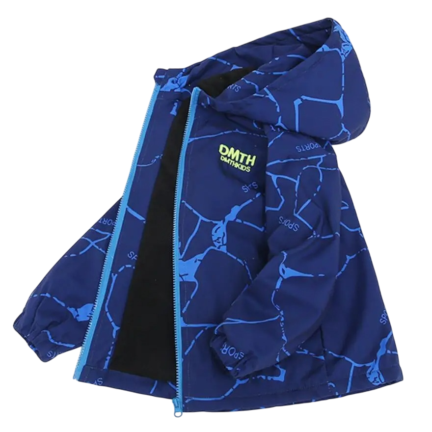Veste d'hiver chaude pour garçon avec capuche et zip. Le matériau en coton-polyester agréable assure confort, protection et bien-être par temps froid. Description complète