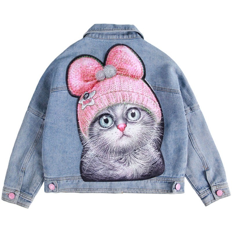 Veste en jean pour fille avec un chat