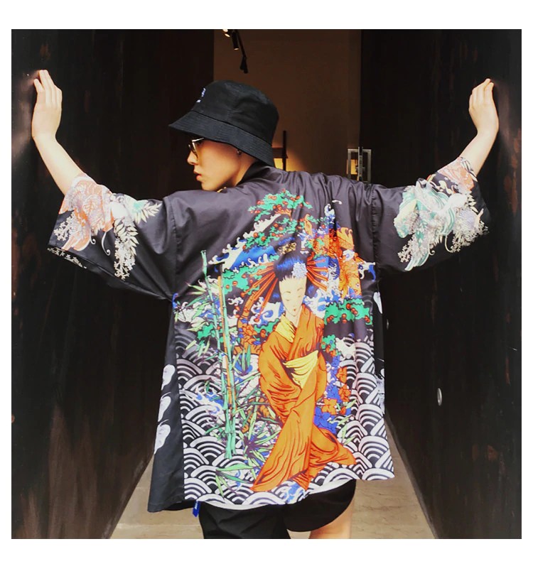 Soyez comme au Japon avec cette veste à imprimé japonais.
