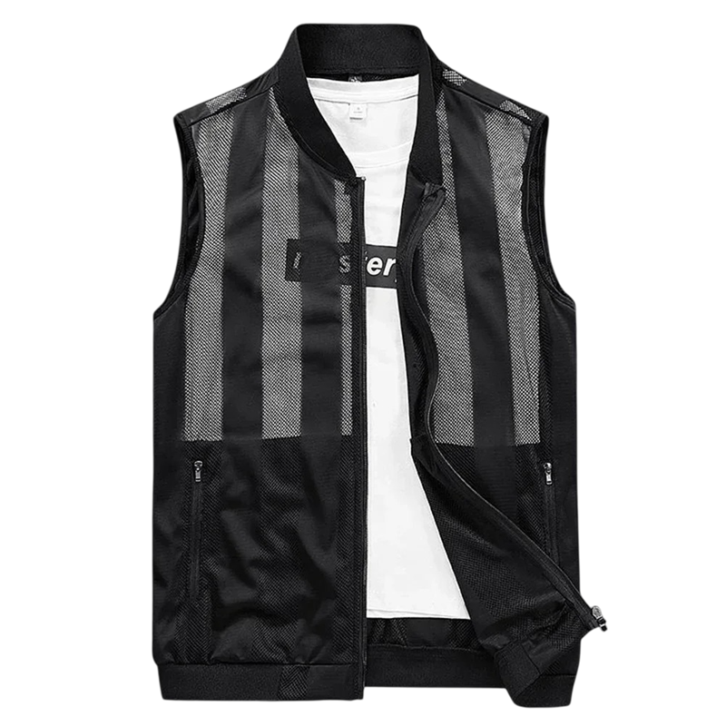 Veste pour homme semi-transparente avec poches zippées en polyester noire pour le sport, les activités de loisirs et le port quotidien par temps chaud