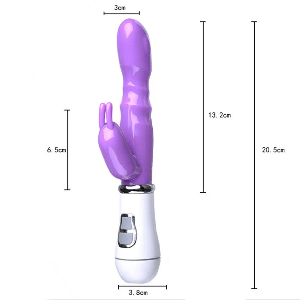 Vibromasseur double avec stimulateur tête de lapin 12 modes de vibration, pour la stimulation du point G et le massage vaginal, surface en silicone, différentes couleurs, Emballage discret