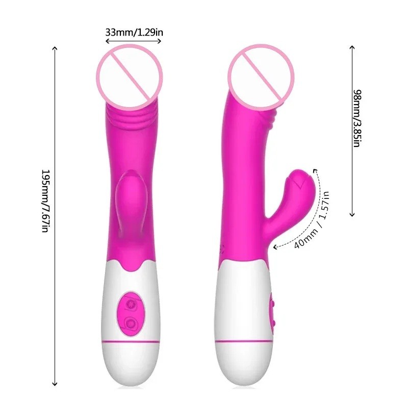 Vibromasseur double avec tête saillante, 30 modes de vibration et excroissance pour le clitoris 19,5x3,3 cm surface en silicone