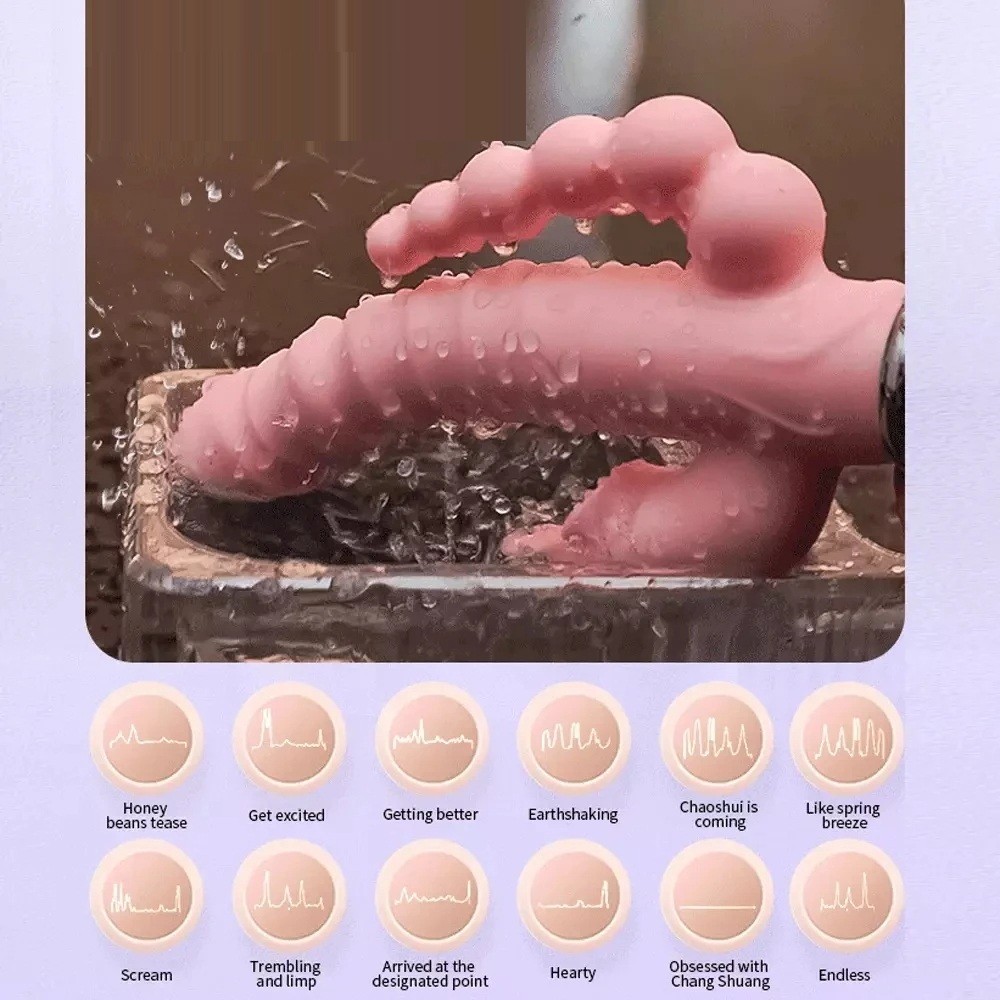 Vibromasseur lapin 3 en 1 en silicone 22,5 cm avec 12 modes de vibration, étanche, à piles, emballage discret