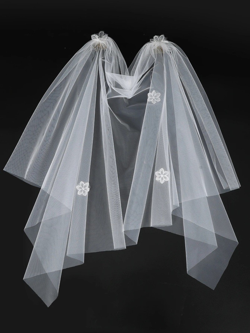 Voile blanc en tulle avec application florale Accessoire capillaire de mariage Voile léger et élégant pour un mariage et un enterrement de vie de jeune fille