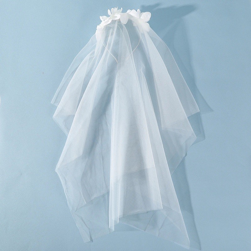 Voile blanc en tulle avec couronne florale Accessoire capillaire de mariage Voile léger et élégant pour mariage et enterrement de vie de jeune fille