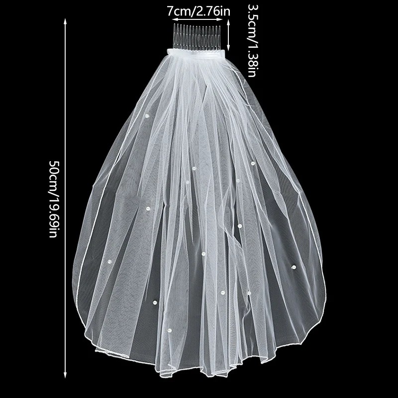 Voile de mariage 50 cm Voile en tulle blanc avec perles Peigne 7 cm Élégant voile court pour cheveux de mariée