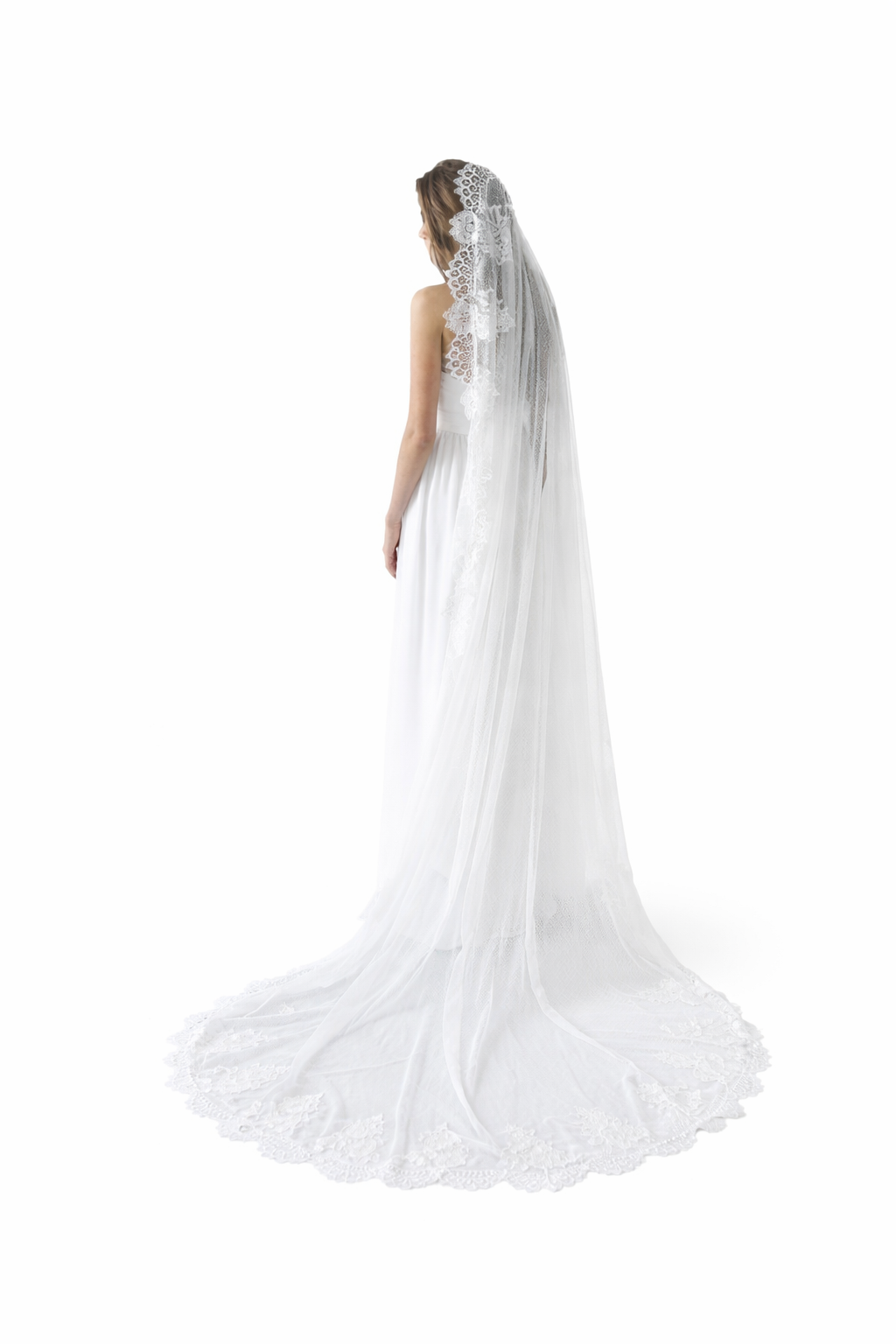 • Bord : dentelle appliquée sur toute la longueur